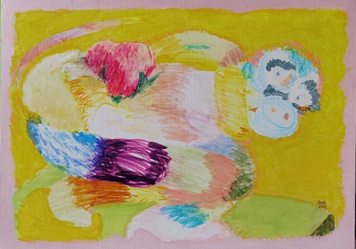 《獼猴盤桃》60×80cm布面馬克筆,丙烯 2023