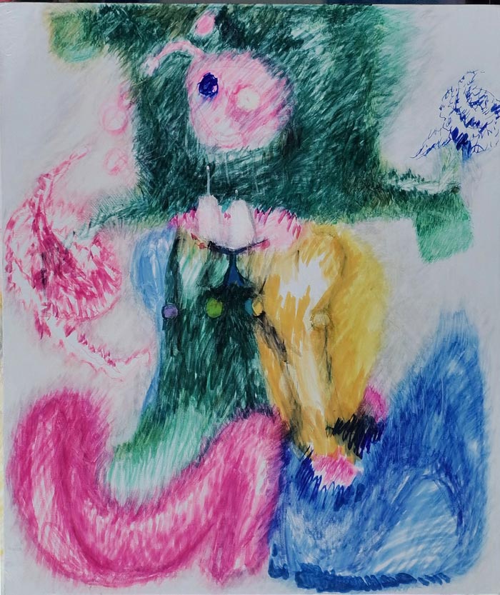 《昆蟲的塑像》60×80cm布面馬克筆,丙烯 2023