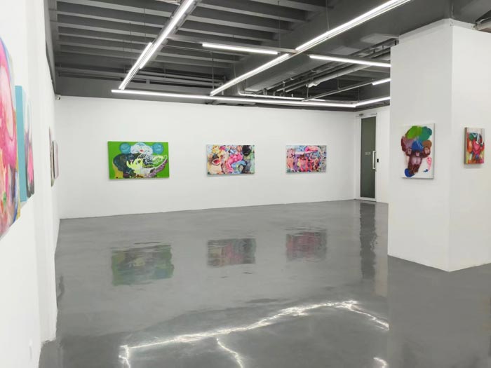 看李世公的繪畫作品,首先映入觀者眼簾的是糖果般斑斕色彩,符號(hào)化的筆觸在畫面上恣肆蔓延。整體畫面感如同于暢快的流淌或是如煙如云一般的色彩凝固,獨(dú)獨(dú)具有半流體狀態(tài),似動(dòng)非動(dòng),既非張揚(yáng)有非含蓄,巧妙地把許多重新解構(gòu)過的形體關(guān)系深藏其間,但只要細(xì)心觀看還是可以看出來(lái)諸如;冰激凌、魚、快餐食品,糖果等當(dāng)今社會(huì)化具象形體符號(hào)的蹤影。通過靈活運(yùn)用繪畫的手段,打破單一形象的束縛,強(qiáng)化其色彩感觀元素,使整個(gè)畫面具有當(dāng)代視覺性,反映出李世公對(duì)繪畫獨(dú)特的理解和對(duì)當(dāng)下流行文化的思考。