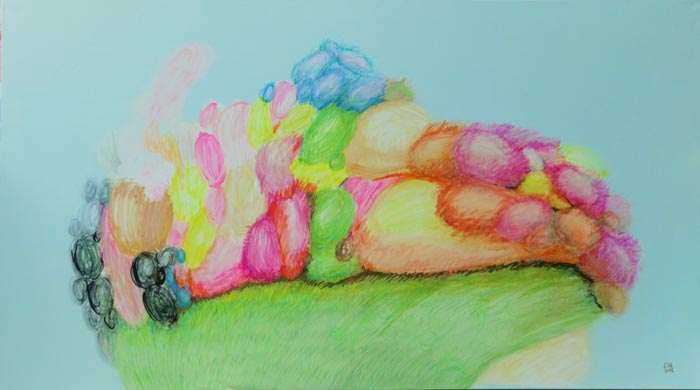 作品《躺著的世界》(丙烯、0.8乘1.6米2010年)2010年底為北京某會(huì)所收藏。