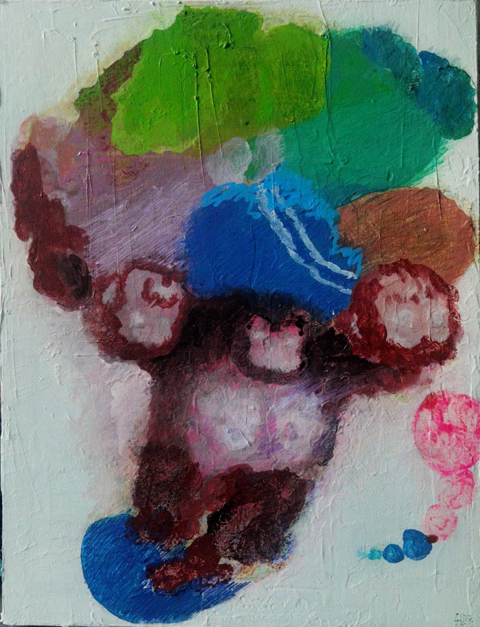 Faced with the absurdity and variety of the transitional life and concepts, the author, taking an attitude an on-looker, continuously reflects himself and thinks about destiny. With the personal sentiment and relaxed bearing, he uses absurd and irrational forms and bright colors, creating a modern image on the platform of art that beyond the touch of personal sensitivity.