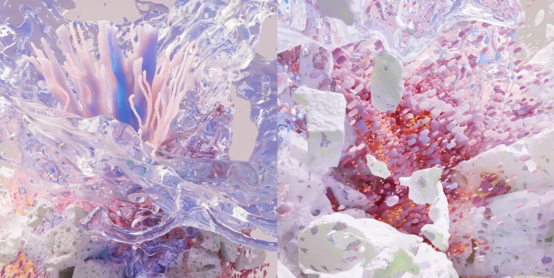 “生命花園”的藝術(shù)項目靈感來源于對“元宇宙”概念的討論。費俊對元宇宙的理解并非簡單地將現(xiàn)實世界數(shù)字化并搬移到虛擬空間,而是構(gòu)想一個生命豐富、禮贊多樣性的世界。借鑒古老的智慧和哲學(xué),以五種元素(金、木、水、火、土)的組合及其相生相克的關(guān)系構(gòu)建每個生命個體,這便形成了“生命之花”的數(shù)字化身。它們聚集在一起,每個個體都在不斷生長,仿佛是一個永生的生命世界,從微觀到宏觀,一個超越常規(guī)的藝術(shù)世界得以示現(xiàn)。