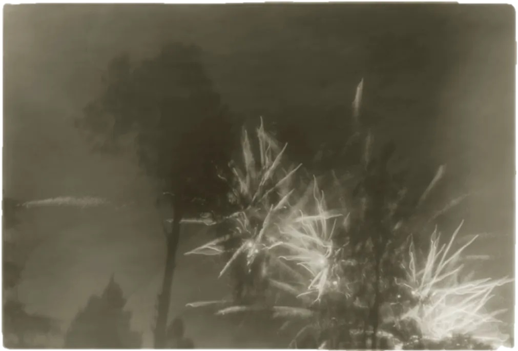 2012年,身處巍山古城的盧彥鵬與火把節(jié)的煙花相遇。他將鏡頭對準(zhǔn)兩棵樹中間,向上與向下,重復(fù)兩個動作——拍煙花散開,以及拍它散落下來。作為工業(yè)革命產(chǎn)物的攝影術(shù),此時形似一種祭祀的儀式,參與了這個古老節(jié)日的狂歡。昆蟲一樣的光被捕捉下來,節(jié)肢動物的觸角或脛節(jié)伸展在黑暗中……一次光的繁殖,證實了攝影成為一種偶然的神跡的可能。