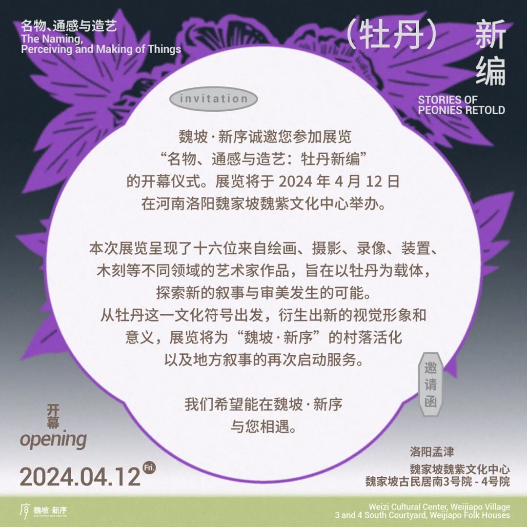 本次展覽嵌入了洛陽魏家坡村的清代古建筑群落之中,展覽材料包括繪畫、攝影、錄像、裝置、木刻、紋樣、器物、文獻(xiàn)等,希望從牡丹這一文化符號出發(fā),提取具有代表性的圖像內(nèi)容與文學(xué)精神,以可感的方式進(jìn)行再編寫和展示,從而衍生出新的視覺形象和意義,為“魏坡·新序”的村落活化與更新工作以及地方敘事的重啟服務(wù)。
