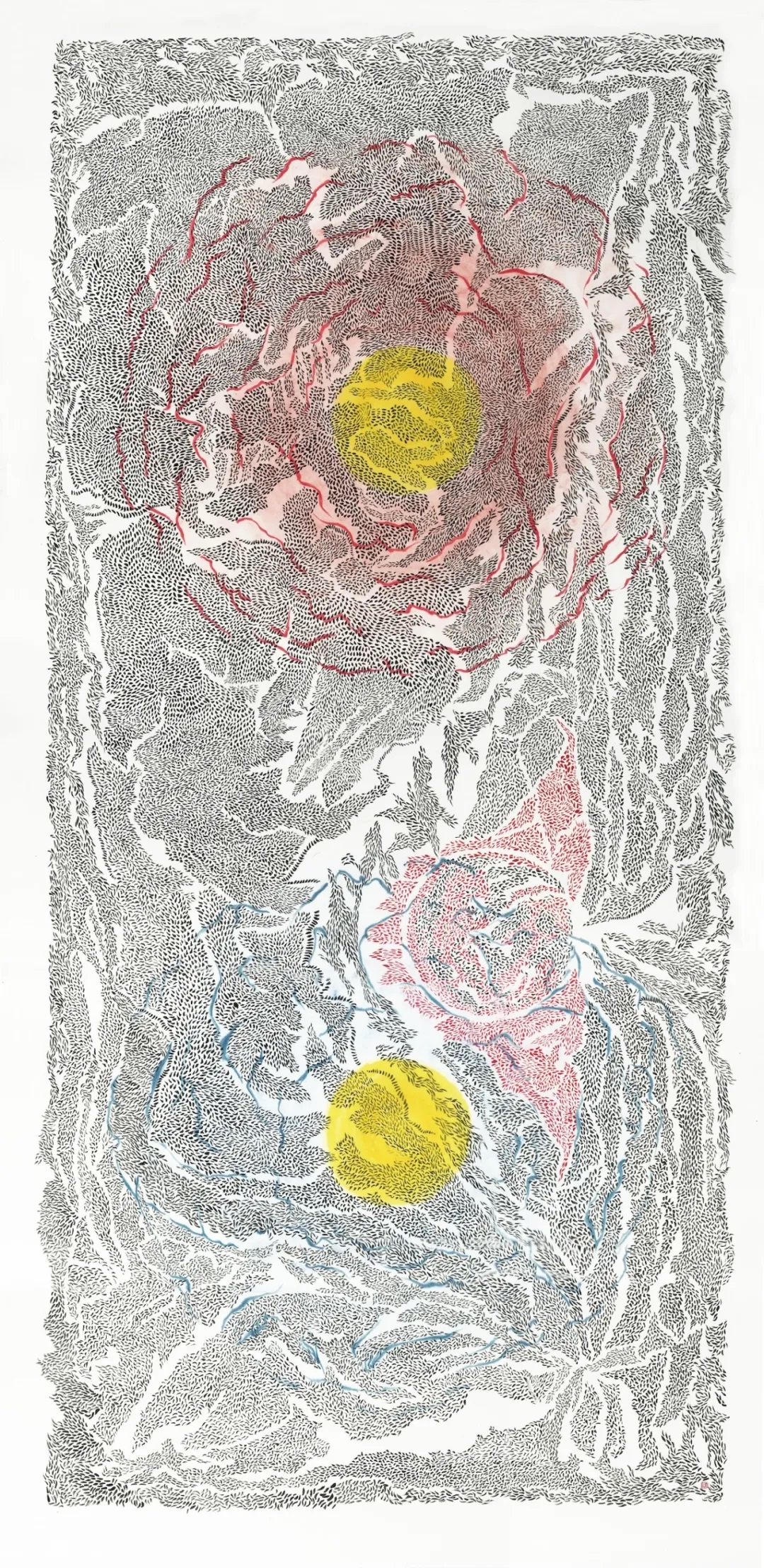 牡丹如何成為瀑布?在繪制壯美的植物時,冰逸創(chuàng)造出壯闊的山巒和流動的能量。她的筆觸述說自然的神奇和生命的律動。它帶來超越物質(zhì)世界的內(nèi)心共振。從溪山到萬花,山水承載了中國人的“萬物”精神:一切事物都互相轉(zhuǎn)化。一切瞬間皆為永恒時空。