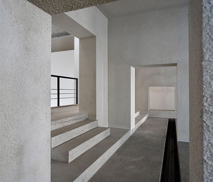 此次展覽是山中天藝術(shù)中心?玄館的初次亮相,它位于北京市朝陽(yáng)區(qū)酒仙橋北路751藝術(shù)區(qū)北一門(mén)??梢哉f(shuō),玄館本身就是一件藝術(shù)作品,此次展覽的策展人之一、北京建筑大學(xué)教授、玄館的設(shè)計(jì)師金秋野利用角落、縫隙和零余空間“造園”,通過(guò)梳理復(fù)雜功能來(lái)創(chuàng)造豐富空間,在最小尺度內(nèi)完成高密度建造,盡量保留原有完整建筑空間,體現(xiàn)對(duì)城市日常歷史的尊重。盡量保留原有建筑和施工過(guò)程中偶然而成的“皺紋與胎記”,表達(dá)“新舊交融、無(wú)新無(wú)舊”的時(shí)間感。注重運(yùn)用來(lái)自自然界的材料,使建筑具有時(shí)間性和溫度。