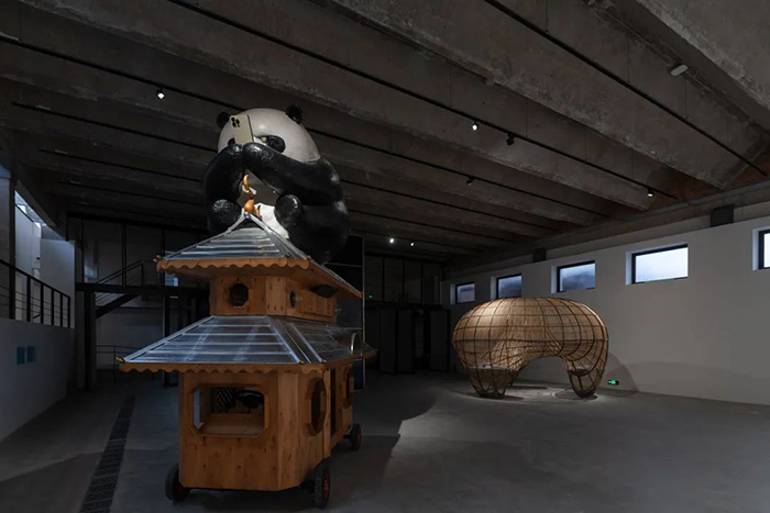 喬小刀是麗江文旅地標(biāo)“荒野之國(guó)”的創(chuàng)始人,他開(kāi)創(chuàng)了全新的視覺(jué)體驗(yàn)。他想起小時(shí)候看的動(dòng)畫(huà)片《大鬧天宮》里的孫悟空和二郎神對(duì)戰(zhàn),身體變成廟,尾巴變旗桿,在《寺廟酒吧》中,他根據(jù)這個(gè)記憶場(chǎng)景重新定義了這個(gè)童話建筑。在有轱轆的廟的頂端,坐著玩手機(jī)的熊貓,或許手機(jī)里就是它的世界。