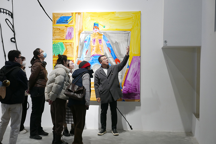 策展人李涵為到場(chǎng)嘉賓進(jìn)行導(dǎo)覽 攝影:阿欒