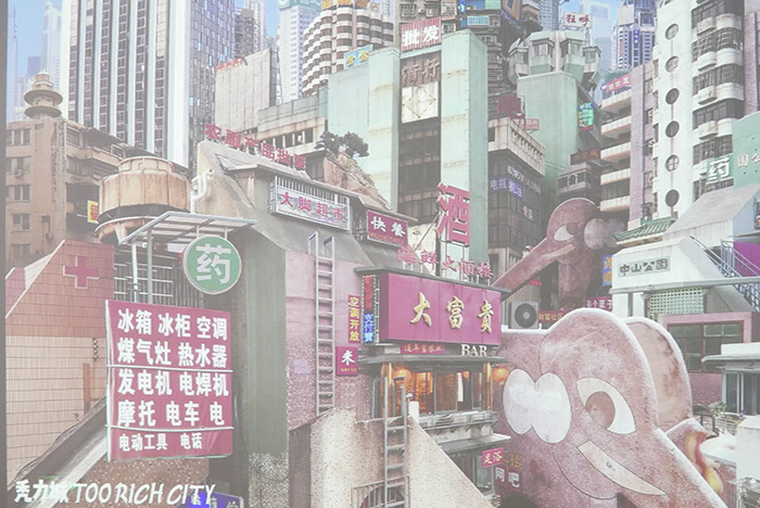 對(duì)于新館的首展,山中天藝術(shù)中心給了策展團(tuán)隊(duì)一個(gè)詞:城市。李涵是“繪造社”主持人,國(guó)家一級(jí)注冊(cè)建筑師,他談到策展思路時(shí)說(shuō):“城市就是很混雜、包羅萬(wàn)象?!彼徒鹎镆岸加X(jué)得“身邊與世界”能將8位藝術(shù)家的作品串聯(lián)起來(lái)。