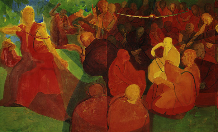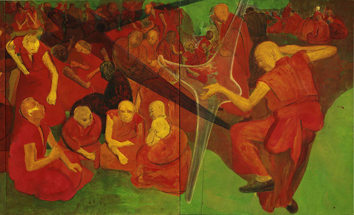 《辯經(jīng)一(左)》布面丙烯綜合技法 2006年 200cm×320cmx2 私人藏