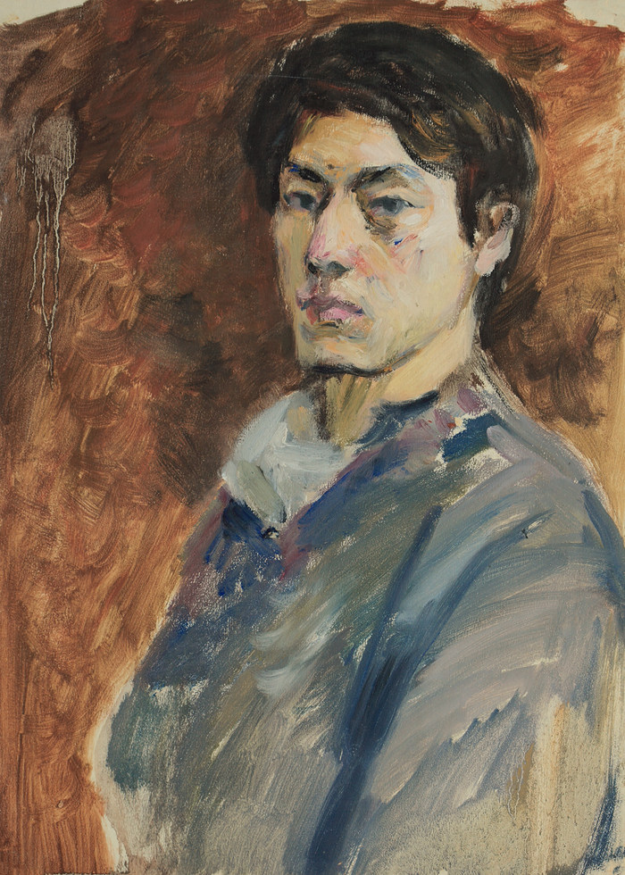《出國前的自畫像》紙本油彩1981年54cm×39cm 自藏