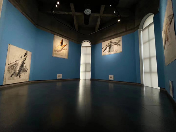 不同于日常美術館將畫作與觀者視線平高的陳列方式,這次展覽采取了過去的博物館或畫廊將畫作層層掛起的方式。對此,馬路解釋道:“我并不是想讓觀者去仰視我的畫,而是想讓人們注意畫的上方還有空間。這個空間實際上是在畫以外的空間,也就是我們心里面的空間,這個空間是比我的畫還要重要的。因為如果我們每個人都有這個空間的話,我們可以創(chuàng)造很多東西。如果沒有這個空間,我們就會變的特別實際”。正如他在開幕式中所說的,“這次展覽特別強調(diào)空間意識。我們不再關注于自己的畫面,而是把畫面放在空間里去觀看。我們會產(chǎn)生一種大的氣象,這種畫面和建筑是一種互相結合的關系?!瘪R路希望以這種展示方式來改變傳統(tǒng)觀看方式,改變中國美術界的觀看方式。