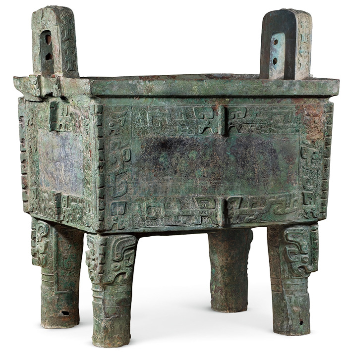 商周時期以青銅器聞名于世,此時的龍?jiān)诠湃搜劾锍橄笃饋?,漸漸符號化、神秘化,龍作為復(fù)雜的紋飾附著在瑰麗的青銅器表面,成為當(dāng)時青銅藝術(shù)的重要一部分,更突出了“禮”的屬性。青銅器上出現(xiàn)了爬行龍、卷曲龍、花冠龍、雙體龍等龍紋。著名的后母戊方鼎在腹部周緣飾有一圈夔龍紋,婦好三聯(lián)甗的暗面繞圈口有三條盤龍紋,戰(zhàn)國時期的曾侯乙尊盤裝飾龍84條,蟠80條。各種青銅重器均將龍紋裝飾其上,增加了器物本身的威武凝重之感。