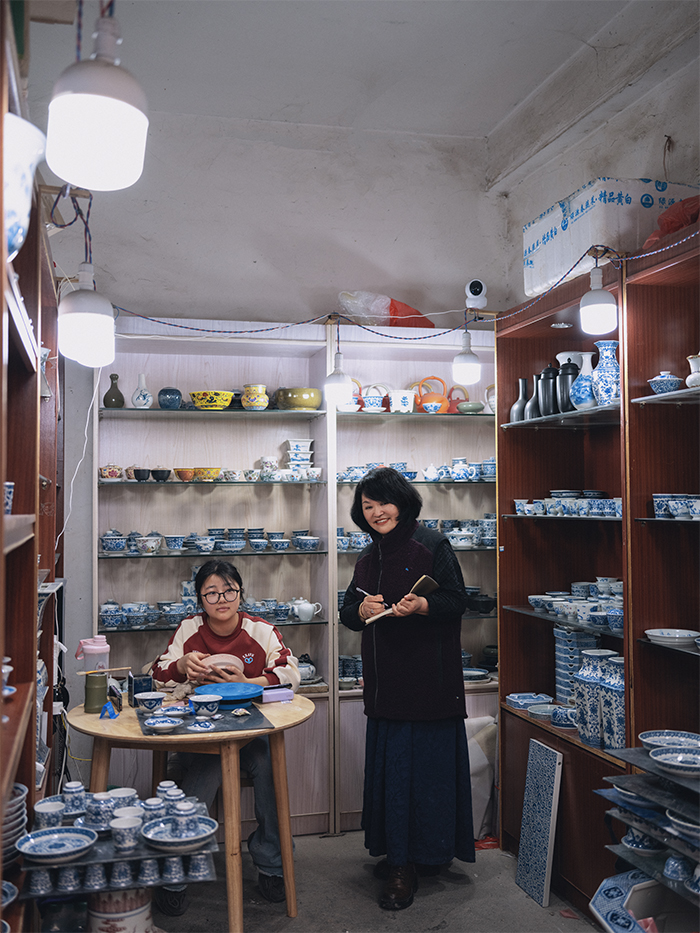 方李莉教授在樊家井仿古陶瓷店鋪?zhàn)鎏镆罢{(diào)查(攝影:王彬 圖片來(lái)源:毛青)