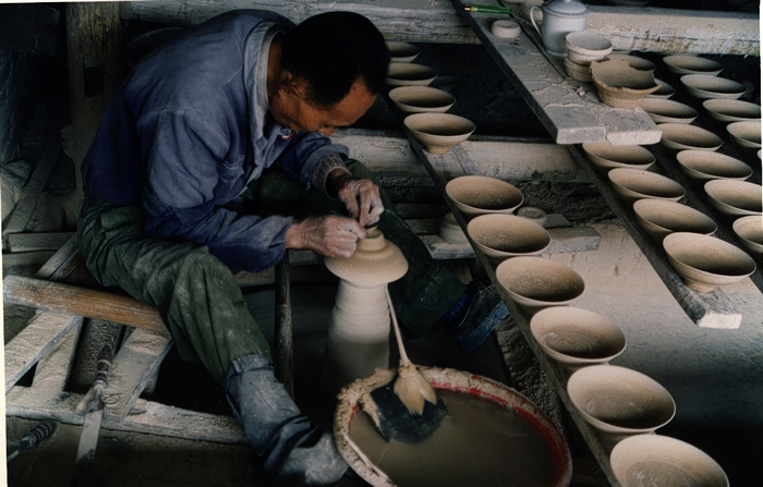 當(dāng)時(shí)國(guó)營(yíng)工廠改制,工人下崗,但是我發(fā)現(xiàn)在景德鎮(zhèn)城鄉(xiāng)交界處的一些村莊里出現(xiàn)了一些手工藝作坊在生產(chǎn)仿古瓷,其生產(chǎn)形式與合作方式幾乎是傳統(tǒng)的翻版,當(dāng)時(shí)我就在思考一個(gè)問(wèn)題,這種傳統(tǒng)的復(fù)興是歷史的倒退還是社會(huì)的進(jìn)步?如果這是進(jìn)步,它是朝什么方向進(jìn)步?我甚至覺(jué)得文化的發(fā)展未必要走直線,其實(shí)可以走螺旋形上升的,也就是看上去是一種傳統(tǒng)的回歸,但實(shí)際卻是一場(chǎng)文化的提升,甚至可以是文明的升級(jí)。