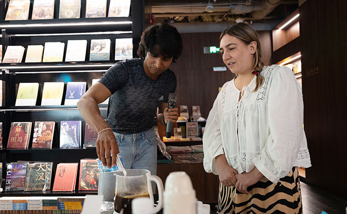 印度專家德偉(Devinder Kumar)現(xiàn)場制作印度傳統(tǒng)阿薩姆奶茶